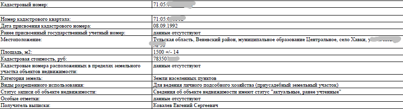 - Выкуплен в 2021 году за 3% от кадастровой стоимости (~90 тыс руб.).